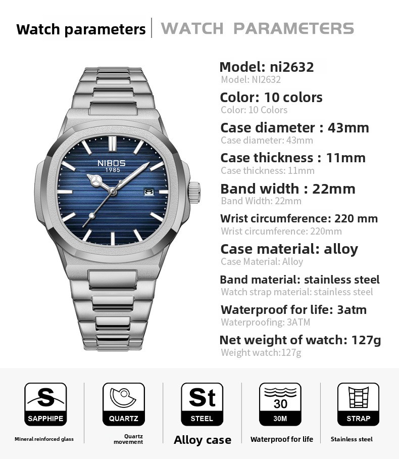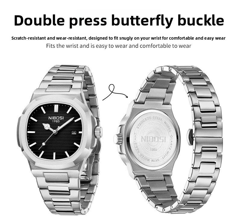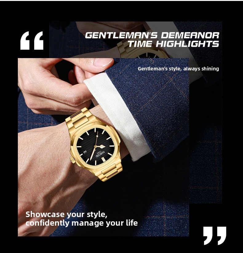 Quartz Movement - Precise timekeeping powered by a reliable quartz mechanism.